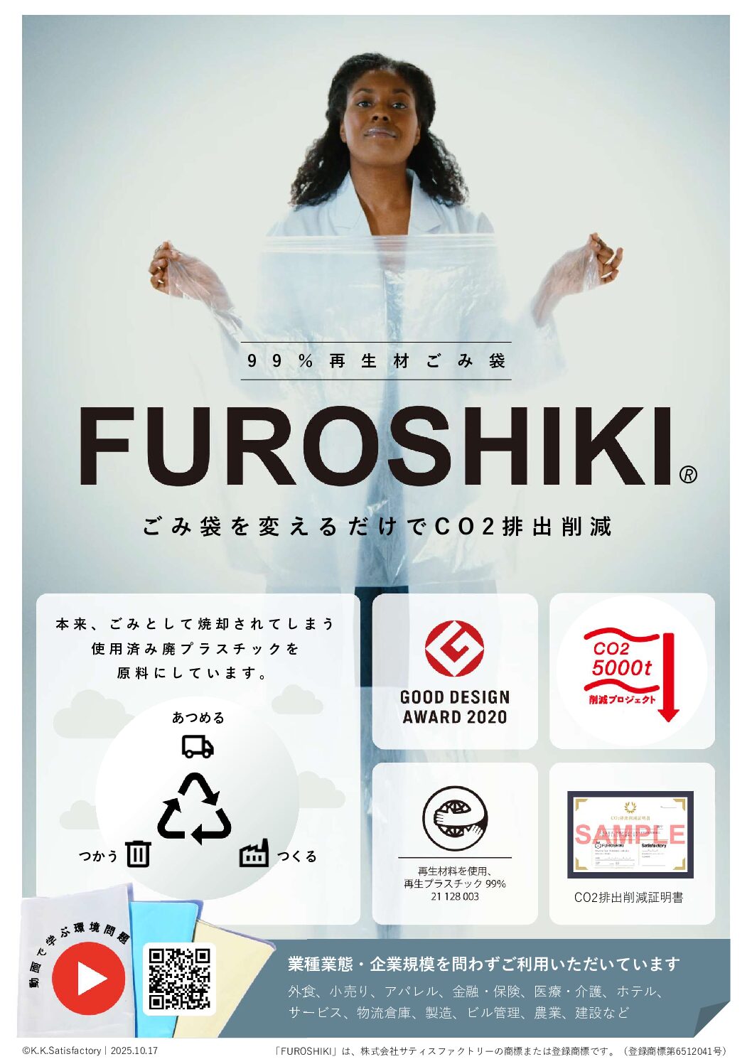 ごみ袋を変えるだけでCO2排出削減 99%再生材ごみ袋「FUROSHIKI」