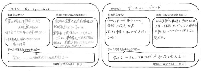 ・SDGsに沿う行動をしようとしても、利益が一番と考える企業や人々も中にはおり、コスト面がネックになるケースが多い。まだまだSDGsやサスティナビリティの理念が浸透していないと感じた。