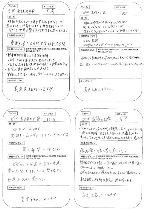 「ガザ 素顔の日常」を社員で鑑賞し、感想共有を行いました。