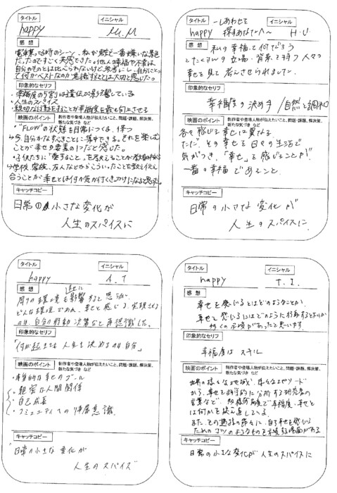 2024年4月18日に行った上映会では、「happy」を社員で鑑賞し、感想共有を行いました。